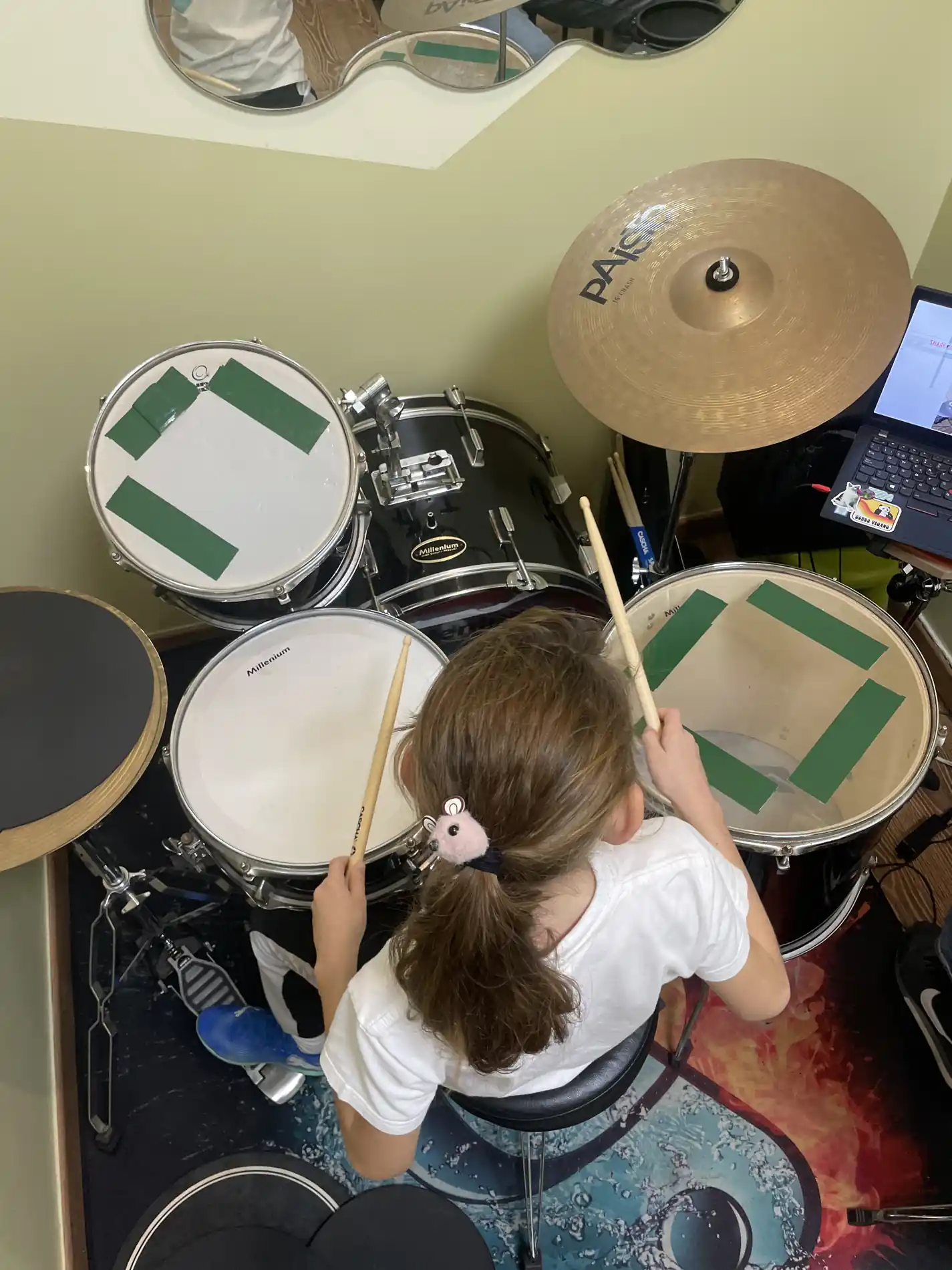 • Toca desde el primer día: Te sentarás en la batería en tu primera sesión. Aprenderás técnica, lectura de solfeo rítmico y acompañamiento musical de forma simultánea.